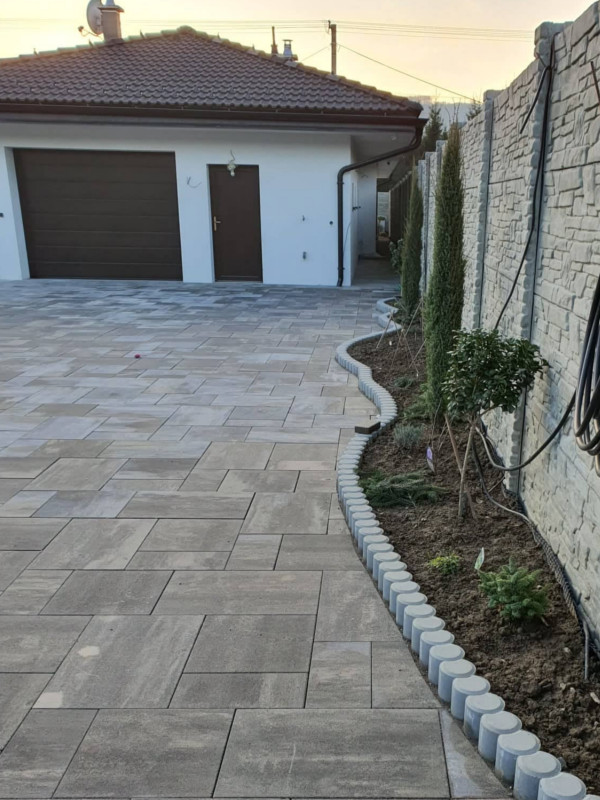 Pokládka rôznych druhov obrubníkov a palisád v okolí chodníkov svahov